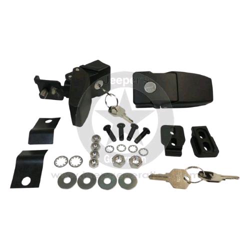 ORDINE SPECIALE SU RICHIESTA, richiedere informazioni sui tempi di arrivo ed eventuali costi aggiuntivi di spedizione. Aggiungi sicurezza al vano motore e agli accessori sotto il cofano con il kit di chiusure per cofano di RT Off-Road. Include una coppia di ganci in acciaio inox 304 verniciate a polvere nera, un set di cilindri di bloccaggio preinstallati con chiavi e tutta la bulloneria necessaria. Il problema del "flutter" del cofano, molto comune su tutte le Jeep JK, viene eliminato eliminando la gomma dalla struttura del kit. Questo kit si installa al posto delle chiusure originali del cofano; installazione senza fori.